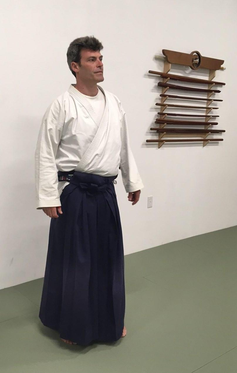 Colin Clark has been practicing and teaching martial arts for more than 30 years. He holds a 3rd degree blackbelt in Kokikai Aikido and a 4th degree blackbelt in Tang Soo Do (Karate). Colin believes that the key to success is to approach practice as a beginner. Keep an open mind! When off the mat Colin works as a facilitator, corporate trainer, and executive coach. He is also a volunteer outdoor leader with Wilderness First Responder & CPR certifications. He lives in Portsmouth, NH with his wife and fluffy dog.